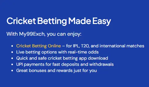 My99Exch serves India with a wide array of sports competitions and casino games. Major tournaments and regional titles, competitive odds, varied markets, and live excitement!